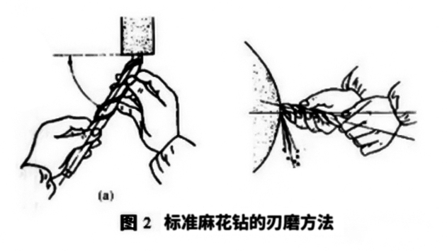 2.钻头的轴线应与砂轮表面成60°角倾斜。