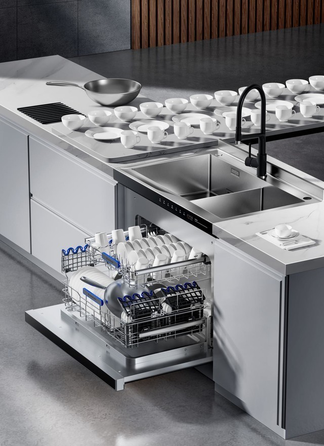 有了集成灶,做饭时的痛点都能解决了,但这样还不足以成就理想中向往的厨房。洗碗一事,油腻腻、脏兮兮,时间长还伤手,吃力不讨好的事情只要存在一天,厨房纵然承载着美食的记忆,但时间一长还是会成为家里隐秘的角落,让人心生退却。因此,向往的厨房,必须要有洗碗机。作为Q6的官搭,火星人配套厨房清洗方案推出了D70集成洗碗机,为千家万户解决洗碗难题。