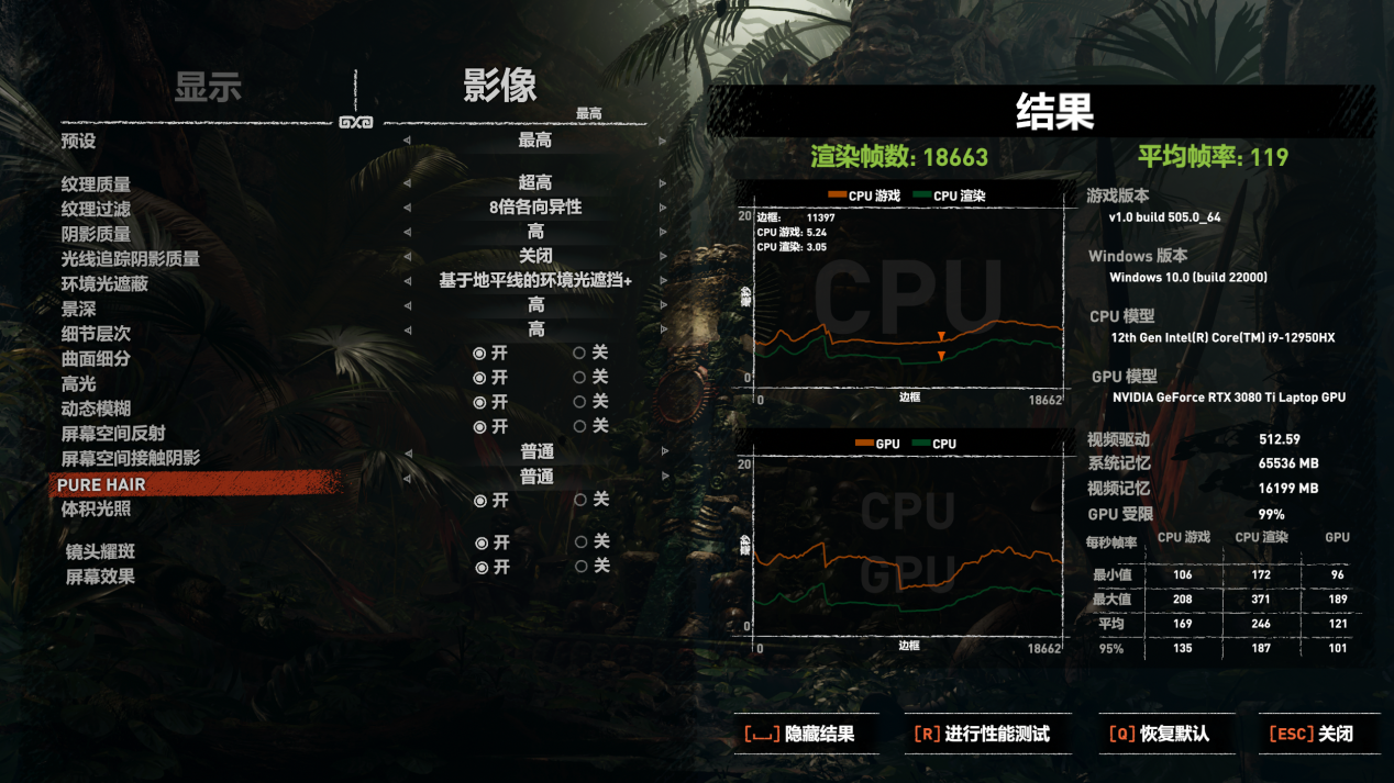 接下来我们测试一下配置要求更高的 3A 游戏。在《古墓丽影:暗影》中,2K 最高特效下,帧数高达 119 帧,畅玩 3A 不成问题。