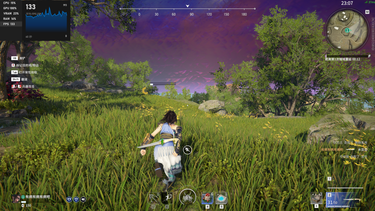 在国产武侠吃鸡游戏《永劫无间》中,2K 最高画质 + 均衡 DLSS 下可以达到平均 130-140 帧左右,拼刀体验非常出色。