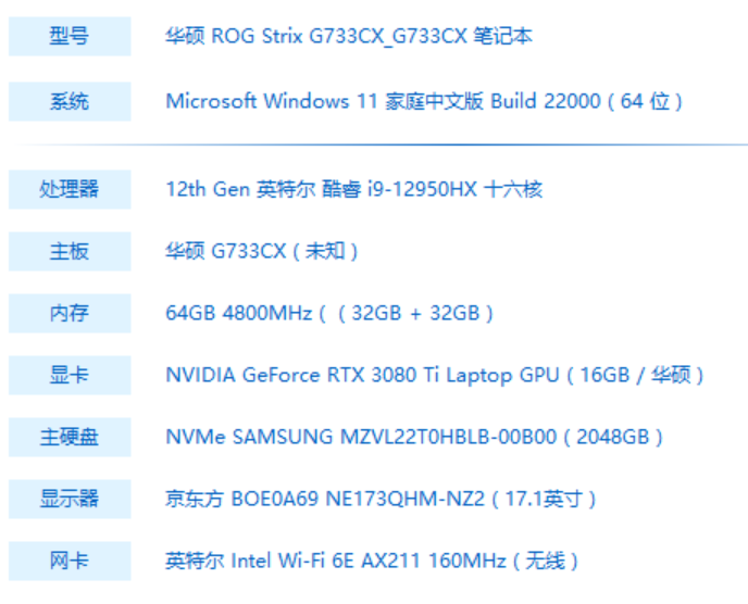 而我们今天的主角 i9-12950HX 正是旗舰中的旗舰。它采用 intel 7 10nm 制程工艺打造,拥有 8 个性能核 + 8 个能效核,其中 6 个大核支持超线程技术,因此共有 16 核 24 线程。基础频率 3.6GHz;睿频 5.0 GHz(ROG 预超频到 5.2GHz);三级缓存高达 30MB。出场默认 TDP 为 55W,但这个只是基准的要求,至于 ROG 在性能这块有多激进,稍后在烤机环节我们就知道了。