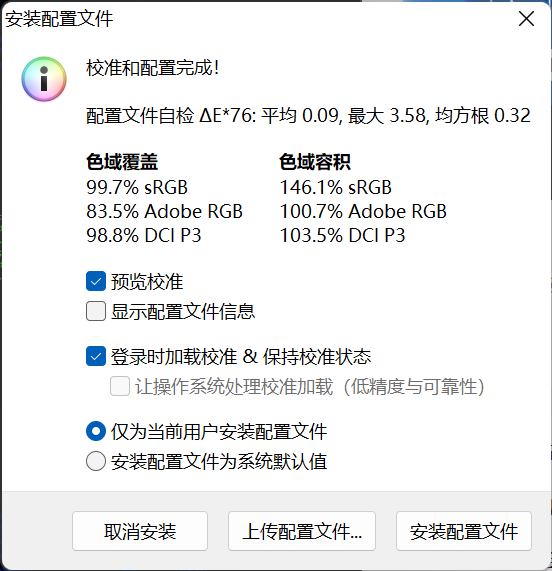经过校色仪的实测,这块屏幕基本能覆盖 100% 的 sRGB 和 DCI P3 色域,同时平均色彩偏离值仅 0.17,最大色彩偏离值仅 0.73。是一块兼顾了分辨率、刷新率和色彩准确度的好屏。即可以拿来玩游戏,也可以拿来创意生产。