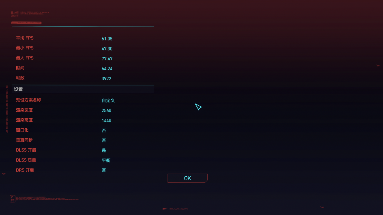 最后一款游戏是《赛博朋克 2077》,这款游戏的压力还是很大的,即便是台式机也鲜有能光追全开畅玩的。但枪神 6 Plus 超竞版在 2K 分辨率超级光追 + 最高画质 + 平衡 DLSS 档位下,依旧可以稳定在 61 帧,是目前游戏性能最强的笔记本电脑了。