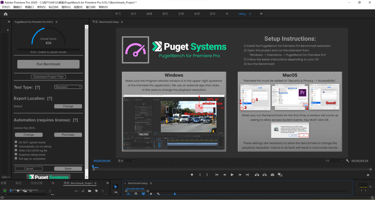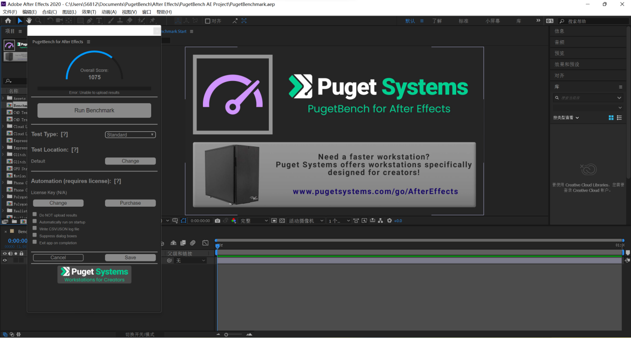在创意工作者们常用的 PugetBenchmark For PR 和 AE 中,AE 得分为 1075 分,PR 得分为 634 分,都可以流畅运行,日常剪剪 1080P 视频、做做中等程度的特效也没啥问题。