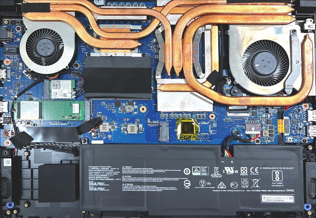 GPU 则是升级到 140W 满功耗的 RTX 3060,那么它是用什么散热系统压制的呢?性能释放如何呢?我们接下来就拆机看看吧。可以看到它采用了双风扇 6 热管的 Cooler Boost 散热模组,压制 i7+RTX 3060 问题应该不大。