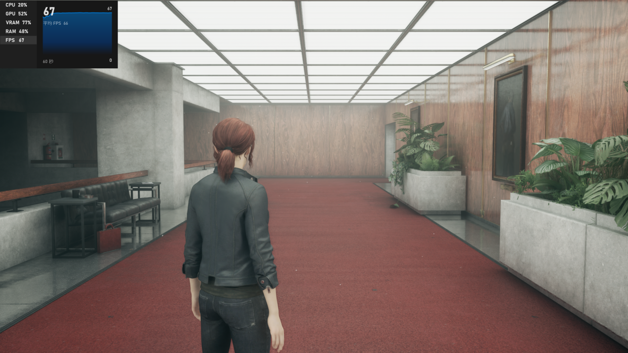 在《控制》中,即便是开启最高等级的光追后,帧数依旧可以达到平均 60 帧以上,畅玩不成问题。