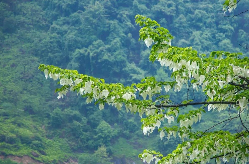 一阵初夏微凉的山风吹来,珙桐花随风摇曳,犹如千万只白鸽栖息在枝头,展翅欲飞。