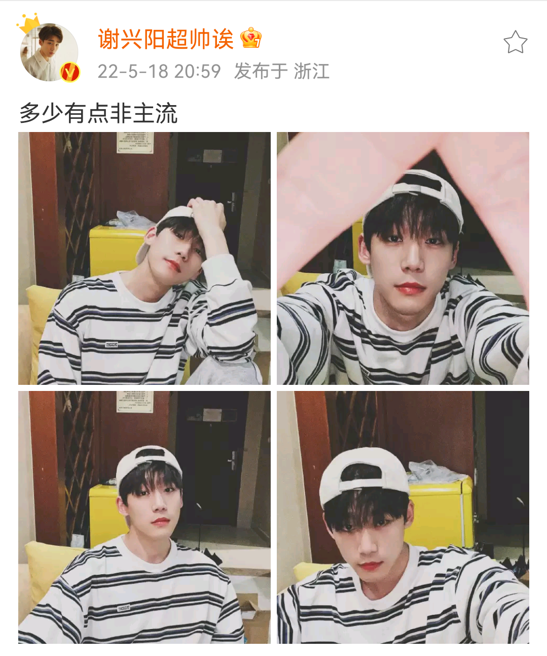同一场景下,谢兴阳变换不同的拍照姿势,不仅有屈膝单手摸头自拍,还有双手微遮镜头自拍。四宫格自拍照既帅气又彰显少年调皮可爱的一面,引得网友纷纷留言评论:“青春伤痛文学男主”。