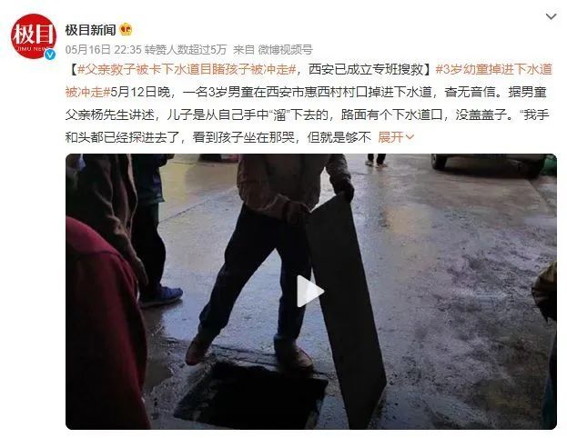 而且遗体是在另一个下水道找到的,孩子被水流冲出去足足500米。