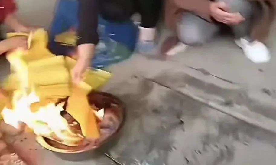 孩子母子崩溃过后,疑似被人拍到在烧纸祈祷。