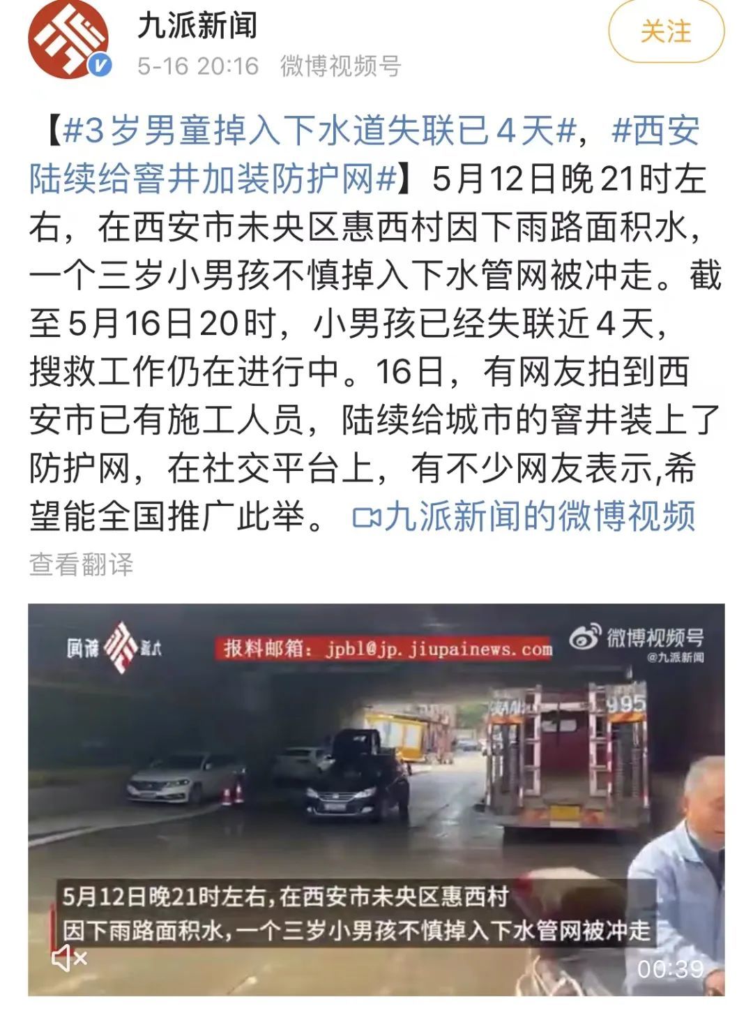 西安这件事发生后,有人发现井盖附近已经加装了防护网,后续可能也会对井盖维修。