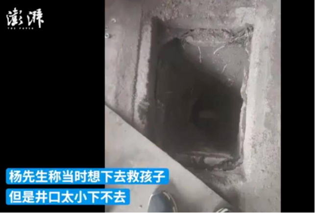 事实上事发当时,杨先生就立即让妻子抓住自己的脚,倒吊着把身子探向洞里,想救孩子。