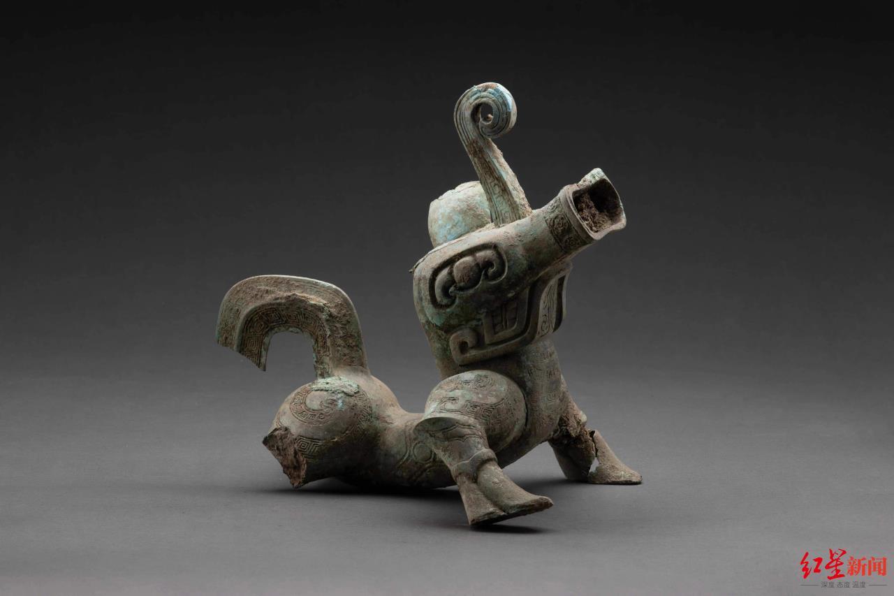 其中首次展出神似“机器狗”的青铜神兽,来自三星堆祭祀区3号坑,网友大开脑洞为其取名“傲娇青铜狗”“青铜吹风机兽”“鼍”“星哮望兽”“观天修勾”等。此外,还有一件爬龙铜器盖也是首次展出的三星堆出土文物。