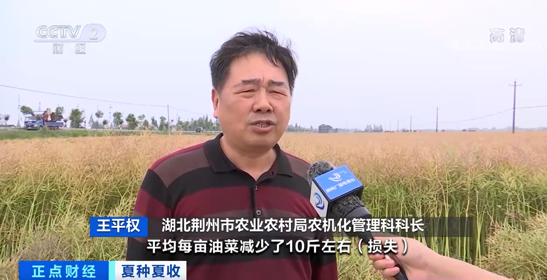 湖北荆州市农业农村局农机化管理科科长 王平权:平均每亩油菜地减少了10斤左右(损失),相当于今年的油菜增加了3000多万斤。