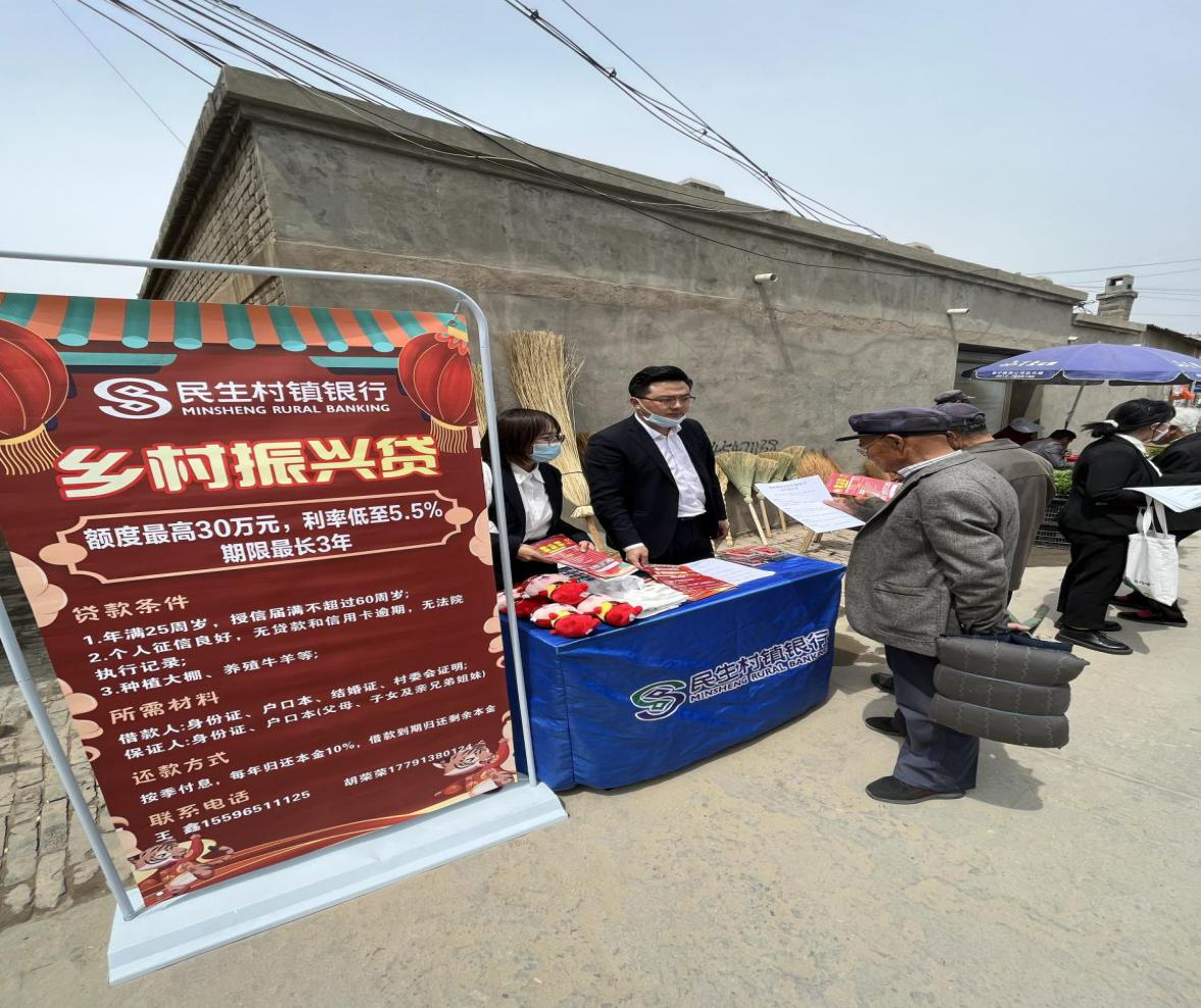 五月,是乡村“春耕”农业生产活动即将结束的日子,肥沃的土地经过一遍遍精心耕耘,在春雨的浇灌下也突显出一片片勃勃生机,趁着这份快要收获的喜悦,5月初,榆林榆阳民生村镇银行乡村振兴团队前往榆阳区镇川镇开展乡村振兴金融产品宣传活动。