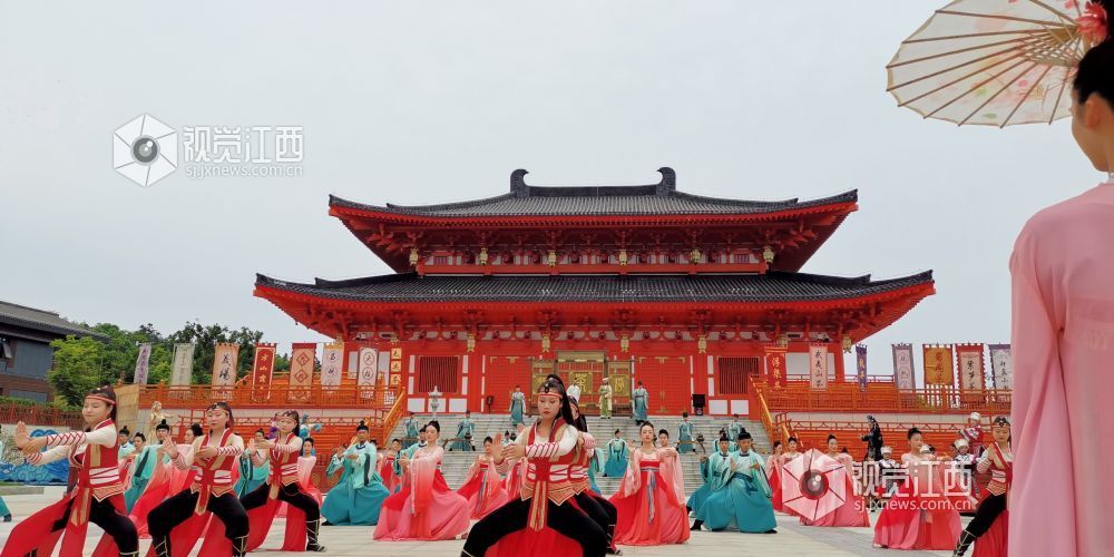 5月18日,浮梁县鹅湖镇高岭·中国村大唐茶市景区,情景式文艺演出《大唐茶市》让游客享受了一场茶文化盛宴。本报记者 王景萍摄
