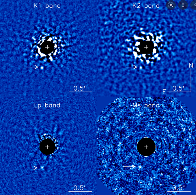 位于智利的双子座行星成像仪捕捉到这一画面。GPI是第一台发现51 Eridani b的仪器,它于2015年发现了这颗行星。当天文学家关注到这一行星时,他们发现51 Eridani b与年轻时候的木星有着许多相似之处。例如,它的质量大概是木星的2倍,但是它还非常年轻,形成时间仅有2000年左右。相比之下,我们的太阳和地球形成已有45亿年。相比于土星与太阳的距离,51 Eridani b距离其恒星较远。