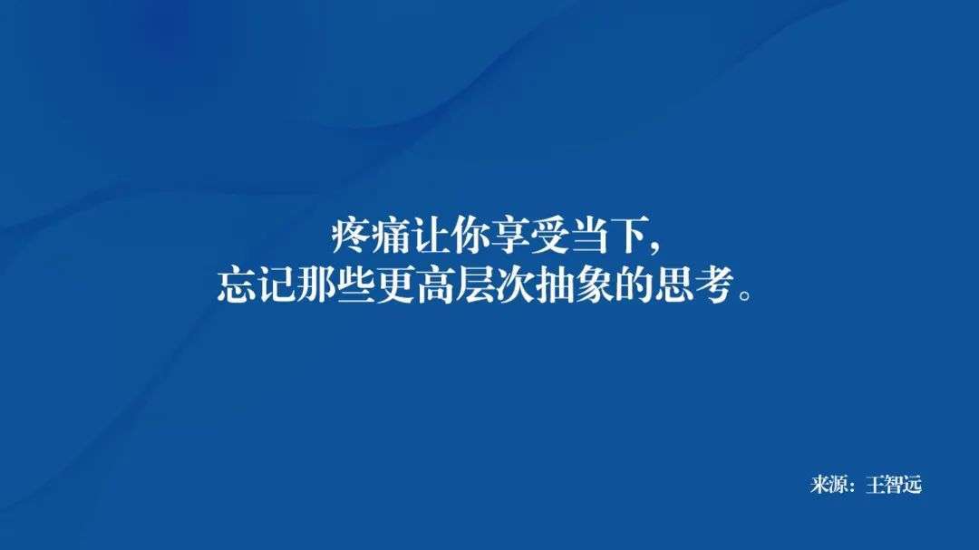 国外一位心理学家曾说,疼痛让你享受当下,忘记那些更高层次抽象的思考;其实对现代高压成年人而言,这些痛苦刚好可以带来片刻的安宁和享受。