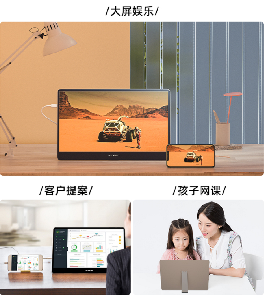 接口方面,INNOCN A1F系列便携器配备双Type-C线缆,1根HDMI信号线。无论是连接笔记本还是苹果设备都超级方便。双屏显示,也能大幅提升操作效率。相同时间,更高质量,让时间更值钱!同时Type-C充电线能与手机充电器混用(30W PD快充),携带出行无需再装电源适配器,一个充电器即可兼顾手机与便携的显示器的电能供给。机身所提供的miniHDMI插口,可适配XBOX、PS5、Switch等市面主流的游戏主机。配合OLED面板1ms的超快响应时间,让游戏画面从此不再拖影和卡顿!
