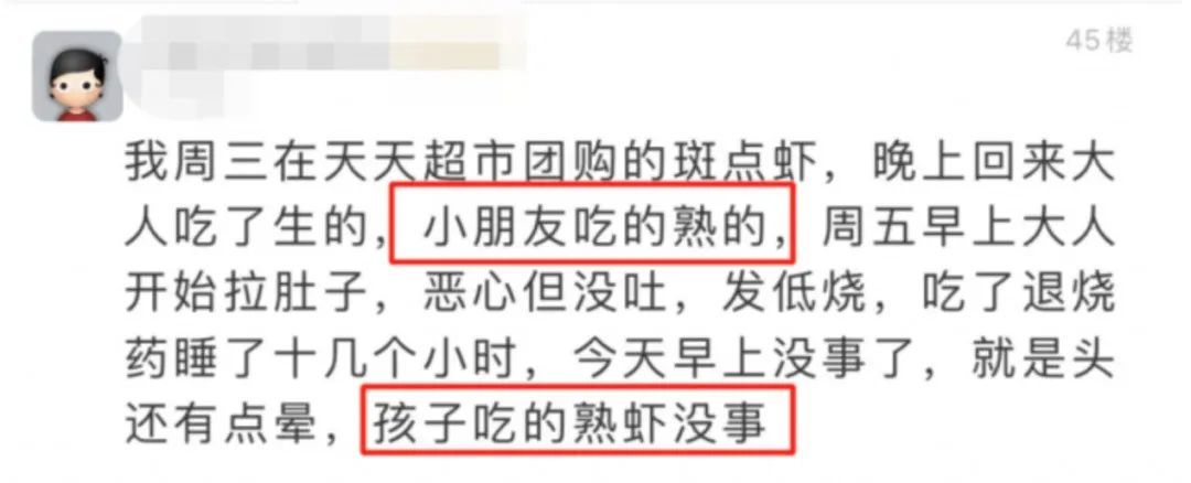 而且在小红书上,也有不少网友发帖表示,自己和朋友因为生吃斑点虾而食物中毒。