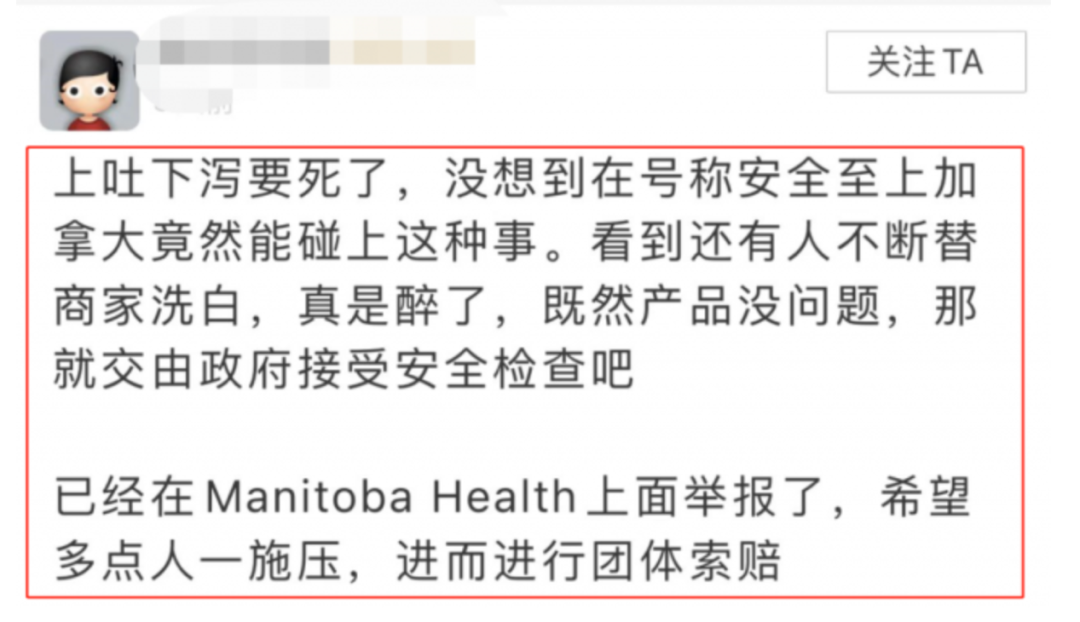 还有人抱怨说,没想到在加拿大竟然能碰上食物中毒事件。