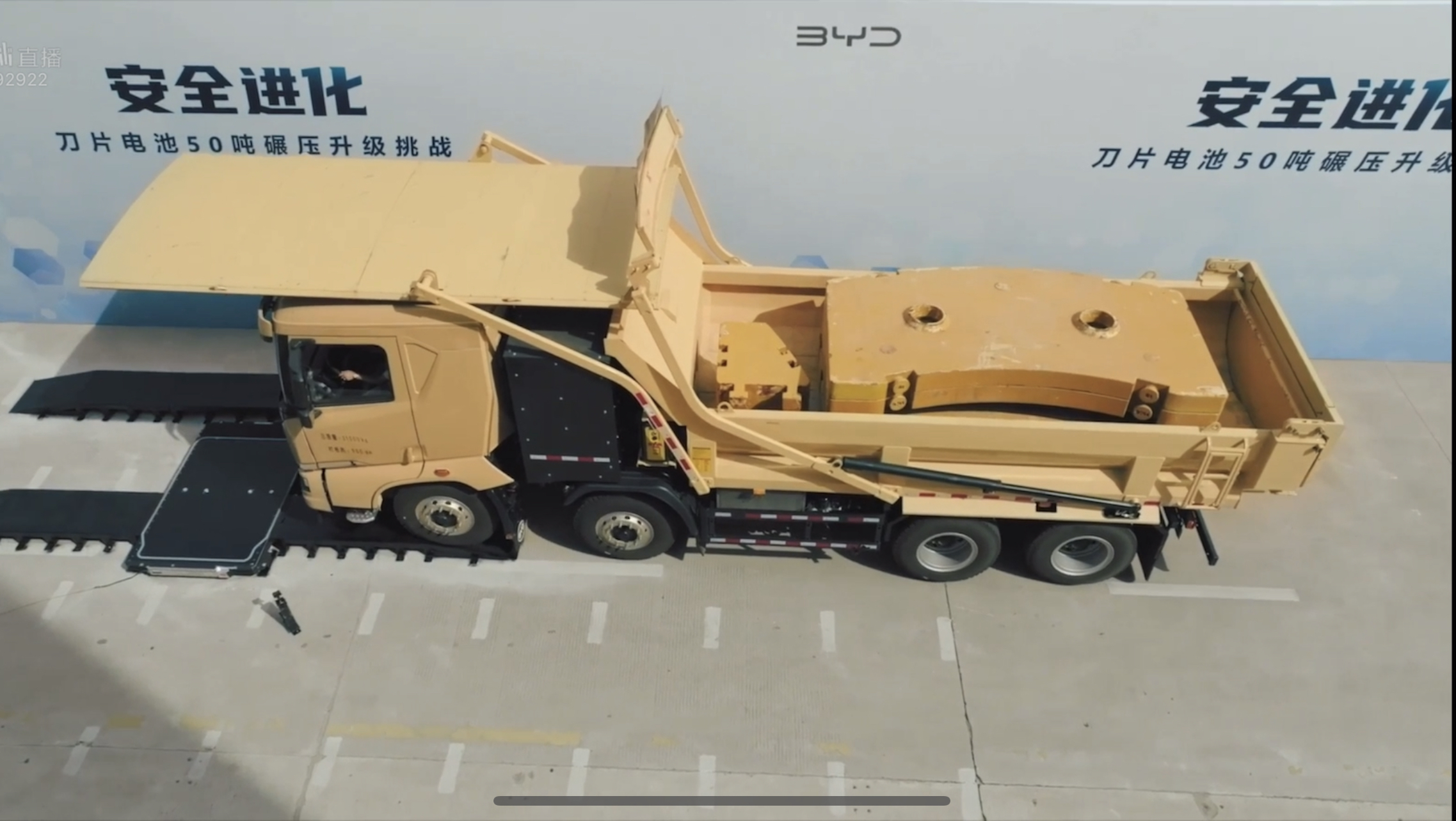 另外,在结构设计上,CTB技术采用了大量的蜂窝铝结构,大幅提升电池包结构强度。在经受重达50吨的卡车碾压后,无冒烟、不起火,再次装车后仍可以正常使用。