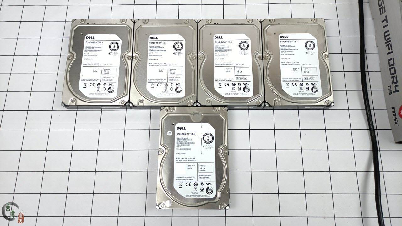 那么今天,我将测试第二批,五块DELL标的希捷3T服务器硬盘,来看看这五块硬盘的表现如何,是捡漏了呢?还是翻车了呢?这五块的型号是ST3000NM0023,128M缓存的,每块价格要比之前那家贵5元。这五块硬盘猛得一看,好像没什么问题。