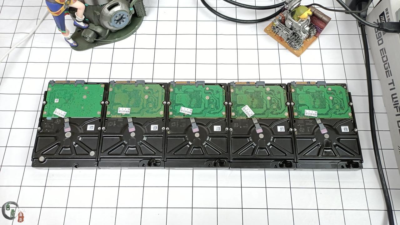 虽然我知道这次硬盘又是大翻车,但是还是实测一下吧。因为很多网友,他们手里并没有这么多硬盘,经验也没有那么足,无法一眼就能从硬盘的外观看出型号来。其实我也是手里有二种硬盘,对比着才看出来的。