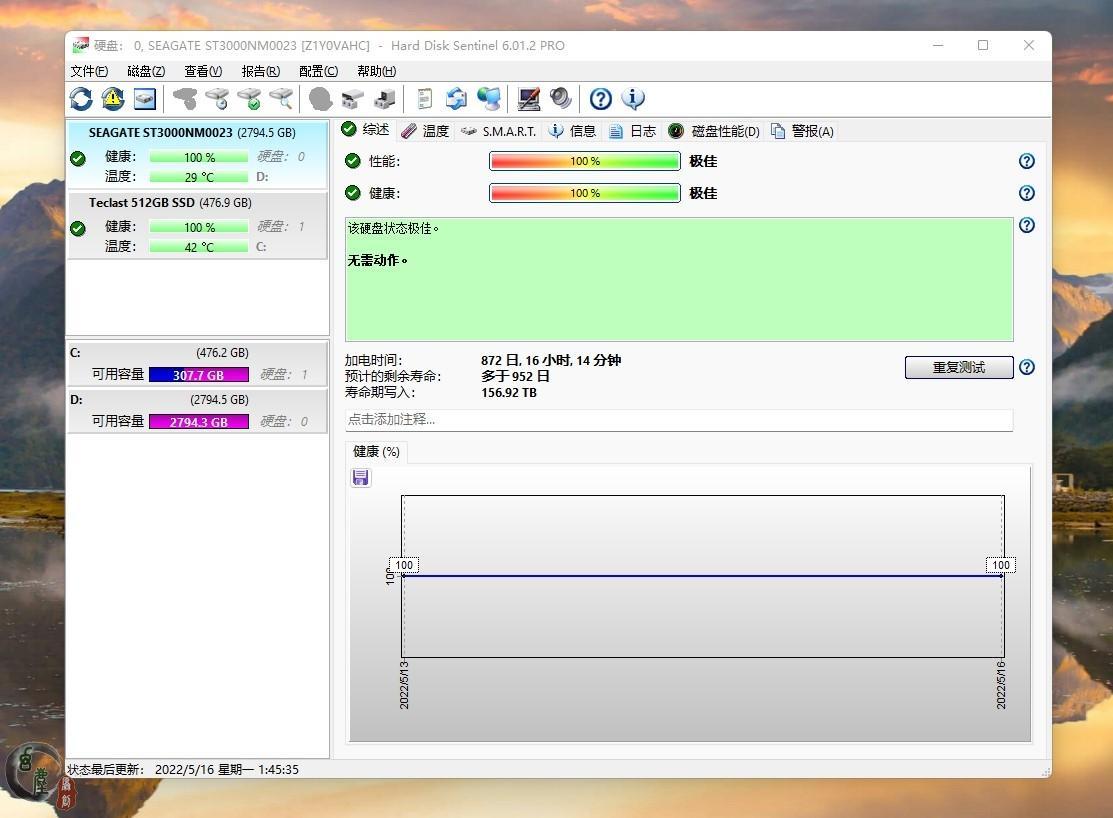 至于第五块,则是正真的ST3000NM0023硬盘了,而且通电时间比较短,只有872天。但是我觉得,它是清零盘,因为服务器硬盘,是不可以使用这么短就拆机的,一般至少也得使用五年或者五年以上才会拆机,除非一些特殊情况。
