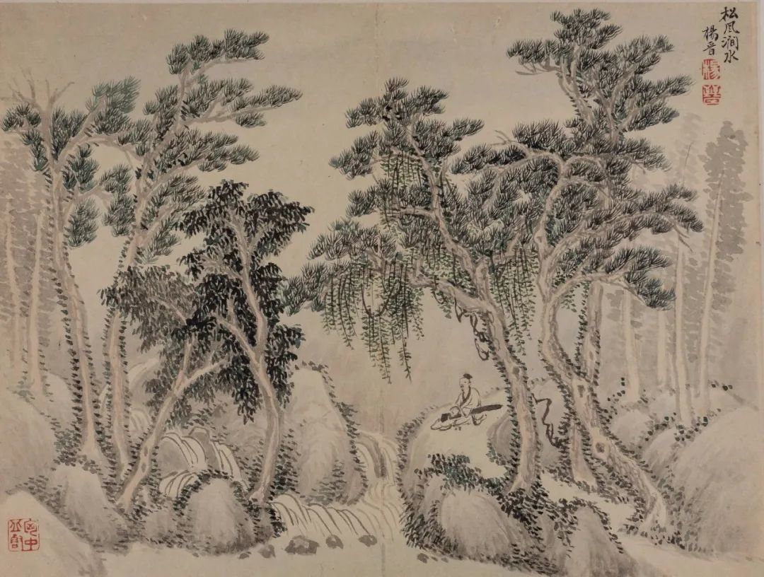 最后三开松风涧水、林亭幽致、嵩祝遐龄,全然出于乃师王石谷笔法,皆笔法洒脱,用墨疏淡清逸。可谓集古人笔法之大成,流露出生趣盎然,清幽灵动的文人格调。