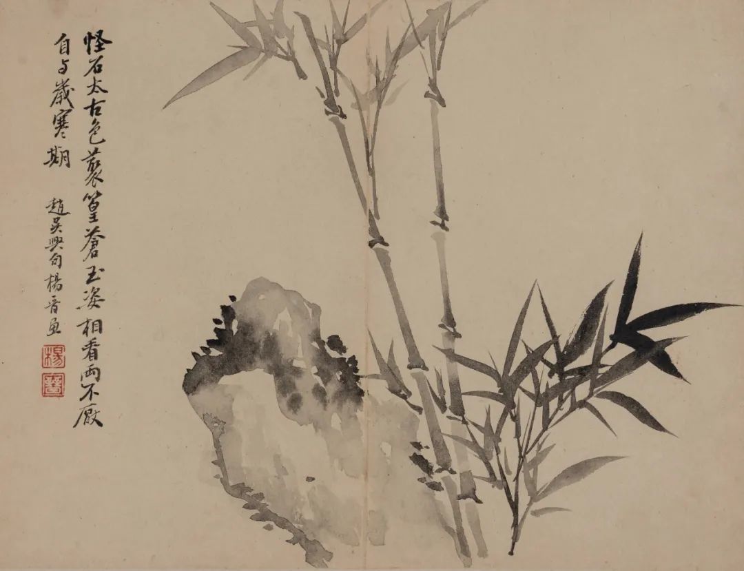 此开拟赵吴兴作墨竹,以书法入画,笔笔着力,圆润厚重,在注意笔墨技巧的同时,更多的追求物象之外的意趣。