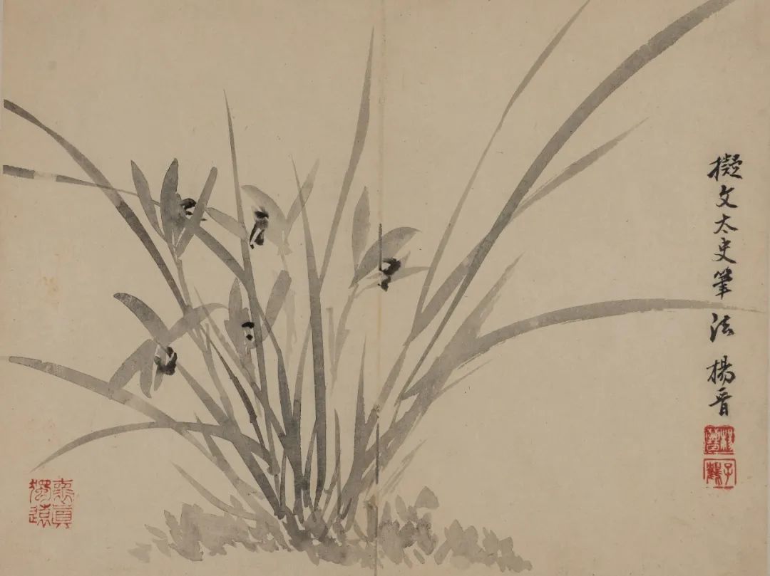 此开拟文太史画兰,格调秀逸自然,潇洒清新,用笔流畅而秀挺,简朴而纤美。兰草叶叶飞舞,刚柔相济,墨色温润,轻盈流利,极富书卷气,体现出文人一种高洁的精神寄托。