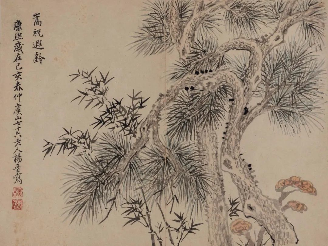 (十二)嵩祝遐龄。康熙岁在己亥春仲虞山七十六老人杨晋写。