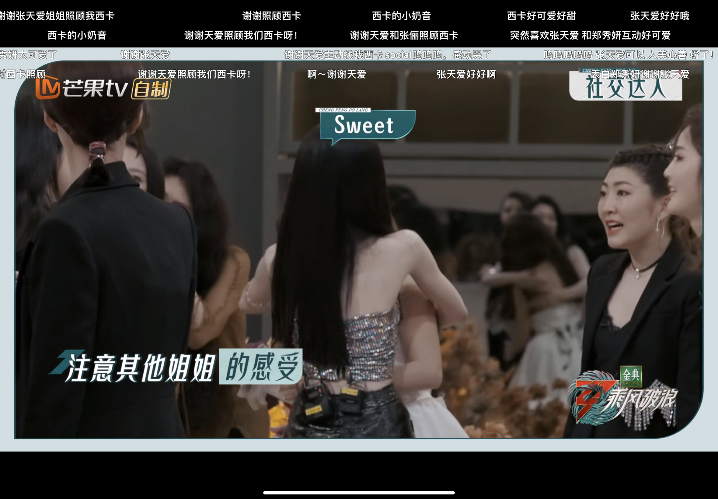 单独看张天爱的时候,会觉得她御姐有气场。可实际的张天爱是会嘤嘤地撒娇软萌怪啊!尤其是在《浪姐》里姐姐们社交环节的时候,看见自己熟悉的二姐张歆艺的时候,会撒娇大嗓门的打招呼,然后撒娇亲昵模样软萌了多少人啊!