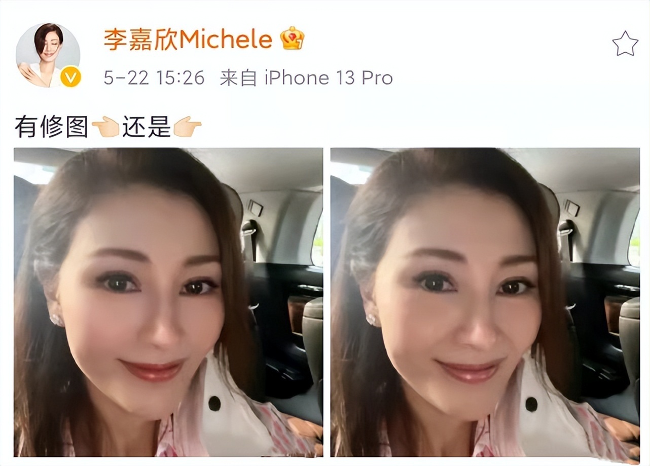 5月22日下午,李嘉欣罕见在个人社交平台分享了两张怼脸自拍,此番po照,李嘉欣将自己的精修照和无修图美照都晒了出来,相当自信。不仅如此,李嘉欣还发文询问网友精修下的自己好看,还是无修图好看。在即将52岁的年纪仍然能大方晒出自己的无修图怼脸自拍,李嘉欣这份自信确实让人无比佩服。