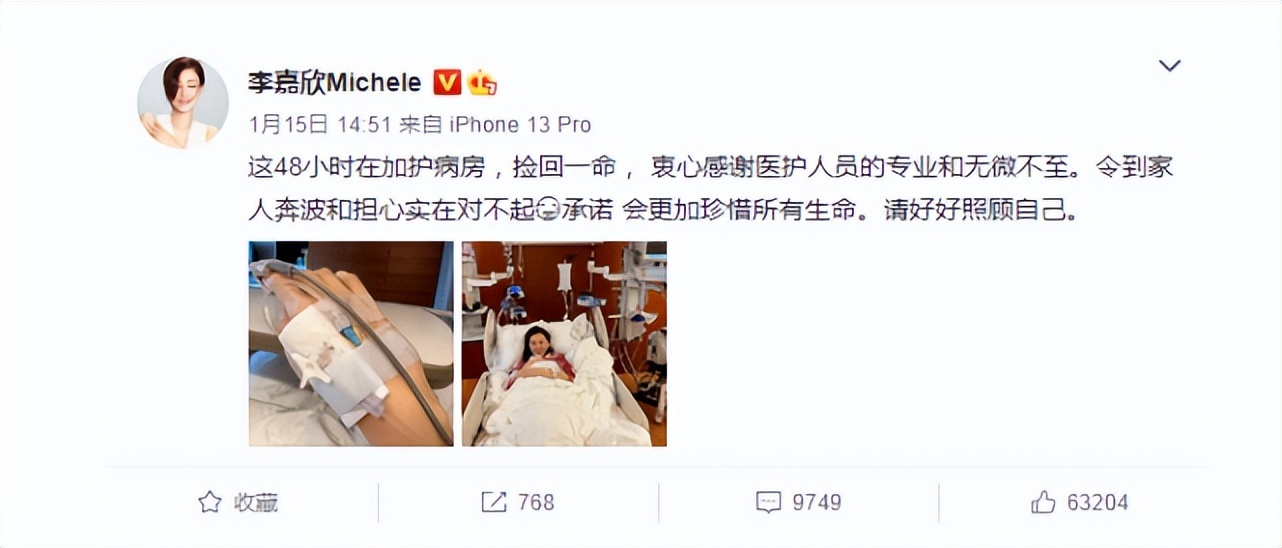 今年1月份,李嘉欣突发疾病,严重到在加护病房抢救了48小时。在平安过后李嘉欣才将这一消息公布出来,她还一并晒出了自己在病床上的照片。虽然当时李嘉欣已经无危险,但看到她在病床上虚弱微笑的样子,还是让粉丝无比心疼。