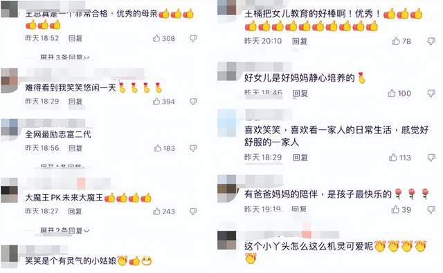 这样一段温馨的亲子时光下也是引来了许多网友留下评论。大家都说王楠把女儿教育得很好,是个十分有灵气的小姑娘,还说很喜欢看王楠一家人的生活日常,感觉非常的舒服,有爸爸妈妈的陪伴,孩子是最快乐的。