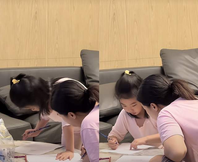 王楠对女儿确实是非常用心,她时常会搬个小板凳坐在女儿身边,和女儿一起聊一聊最近的学习,而且也会拿起笔和女儿一起画画,场面非常的温馨。