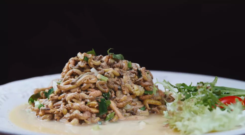 禾虫虽然样子狰狞恐怖,但确实美味,这缘于禾虫富含丰富的蛋白质和氨基酸。禾虫的鲜味非常浓烈,这主要是其呈味氨基酸约占总氨基酸量的58%。钵仔生焗禾虫、禾虫焗蛋、生炒禾虫,超过140℃,发生美拉德反应,蛋白质还分解为鲜味的氨基酸,所以又香又鲜。禾虫煲莲藕眉豆汤、禾虫炒饭,只是简单地让禾虫的呈味氨基酸表现出来,已经鲜得让人瞠目结舌。我个人喜欢的做法是钵仔禾虫焗蛋,禾虫埋在鸡蛋里面,这样看起来没那么恐怖。不管何种烹饪方法,事先都得清洗,既要把泥土洗干净,又不能让禾虫爆浆,否则,浆和泥混在一起,只能弃之不用了。方法是两手拉细绳在盆里一兜,禾虫即攀挂于绳上,把它们放到细网筛上轻柔洗净,再放入干净盆中。烹制钵仔禾虫,要先将生油淋入装禾虫的盆中,大群禾虫在油中蠕动,这一步可使禾虫喝油,更为丰盈饱满,并自动爆浆。待禾虫爆浆后,要加入鸡蛋、陈皮、蒜蓉拌匀,盛入瓦钵后蒸熟,冷却后连瓦钵明火烘干,或在焗炉中烘烤,之后洒胡椒粉,即成一味闻之奇香、入口欲罢不能的钵仔鸡蛋焗禾虫。