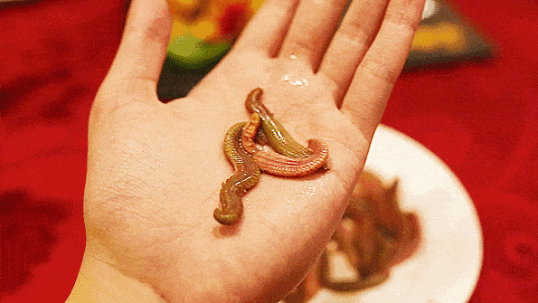 禾虫的“浆”,是禾虫美味的关键,屈大均在《广东新语》中说“得醋则白浆自出,以白米泔滤过,蒸为膏,甘美益人”,这个“白浆”,其实是禾虫的精子和卵子。每年农历四月至五月,九月至十月,是禾虫的繁殖期,平时生活在河流入海处稻田泥土里的禾虫,会在涨潮期时的夜晚出动,繁殖后代。这是一种十分特殊和壮观的交配方式:涨潮时,水的盐度较高,释放出来的禾虫卵才可存活;潮退时,受精的禾虫卵才可随潮水退去散布在远方,更方便觅食;禾虫没有任何自我防御功能,一冒头可能就被其它动物吃掉,只能采用集体孤注一掷的策略,集体钻出泥土,庞大的数量和夜色的掩护,确保了一定的存活率。经过一个多小时的前戏,雌虫裂开口子,把卵子排出来,雄虫释放出精子,这样,卵子和精子在水中结合,形成受精卵。禾虫的幼体,会先在水中浮游,以藻类为食,长大后就钻进泥土里。渔民的任务,是在禾虫浮出水面,还没排出卵子和精子之前将它一网打尽,一旦卵子精子排出来,就是“爆浆”,这样的禾虫,味道就差远了。不用担心这种捕捞方法很残忍,总有漏网之虫,每只禾虫怀揣20多万卵子,生殖能力惊人,而且,禾虫一旦排出卵子和精子,也就走到了生命的尽头,干瘪的躯壳,沉入水底,这种生命的轮回,非常伟大,舍身只是为了下一代,当然,你也可以理解为,禾虫们“爽死了”!