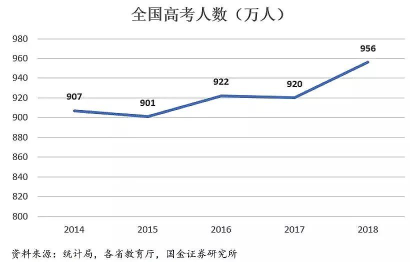 而另一方面,尽管2015-2018年高考适龄人数是在减少的,但是高考人数其实是增加了的。