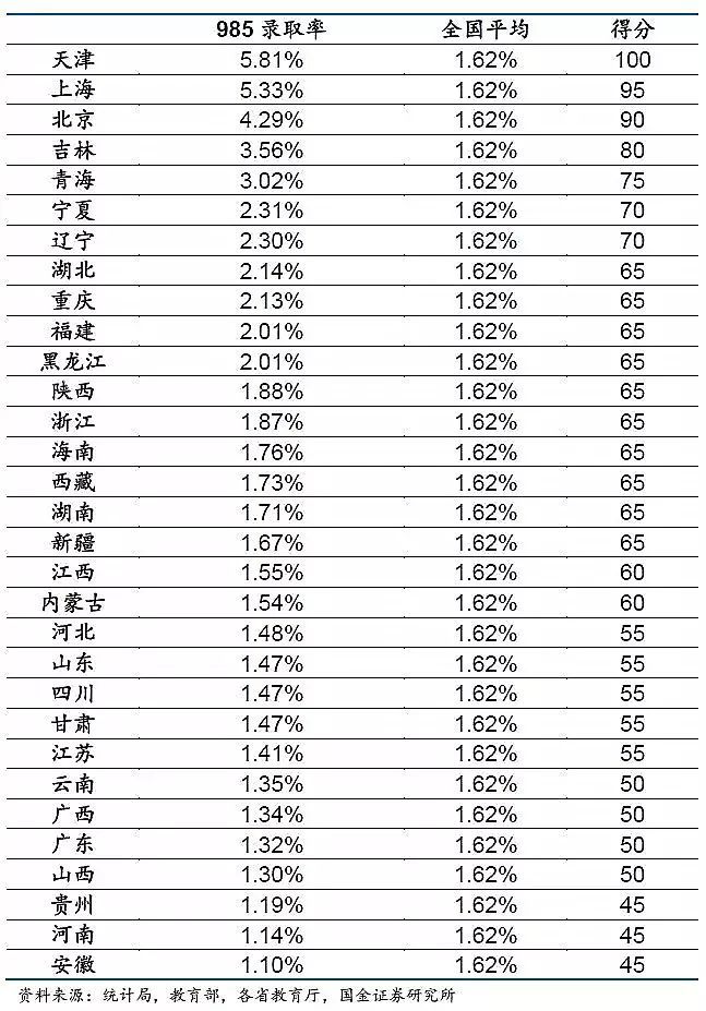 录取率是一个相当可测可比的指标,不管该地区好学校多寡,人口多寡,录取率总是一个比较客观可比的因素。我好学校少,但985整体录取率(考取率)高也行啊,我人少,但是别的学校给我们名额也相对更少,也没用,所以“录取率”是更客观可比的指标。