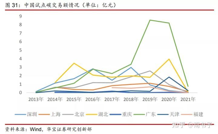 根据上海环境能源交易所总经理刘杰的说法,目前,共向首批参与交易的电力行业发放了两年的配额,电力行业年度碳排放量约40亿吨。参与首批开户的电力企业共计2225家。刘杰表示,全国碳市场首批以发电行业起步,“十四五”期间,预计石油、化工、建材等八大重点能耗行业都将被纳入到碳市场,未来八大行业控排企业大约有8000至10000家。
