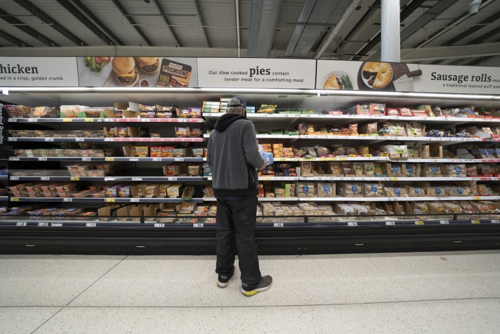 4月13日,一名男子在英国曼彻斯特一家超市内购物。新华社发(乔恩·休珀摄)
