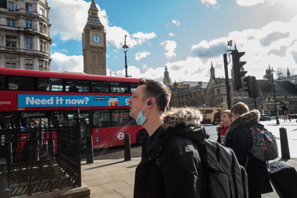 2月24日,人们走在英国伦敦街头。新华社发(安迪·霍尔摄)