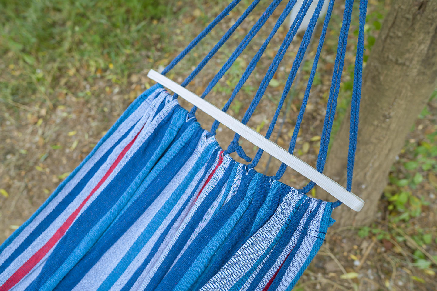 月牙棒防侧翻的效果确实明显,如果没有这个木棒支撑,真个吊床都是缩在一起的,不容易躺上去,加了木棒后,吊床才回舒展开来。