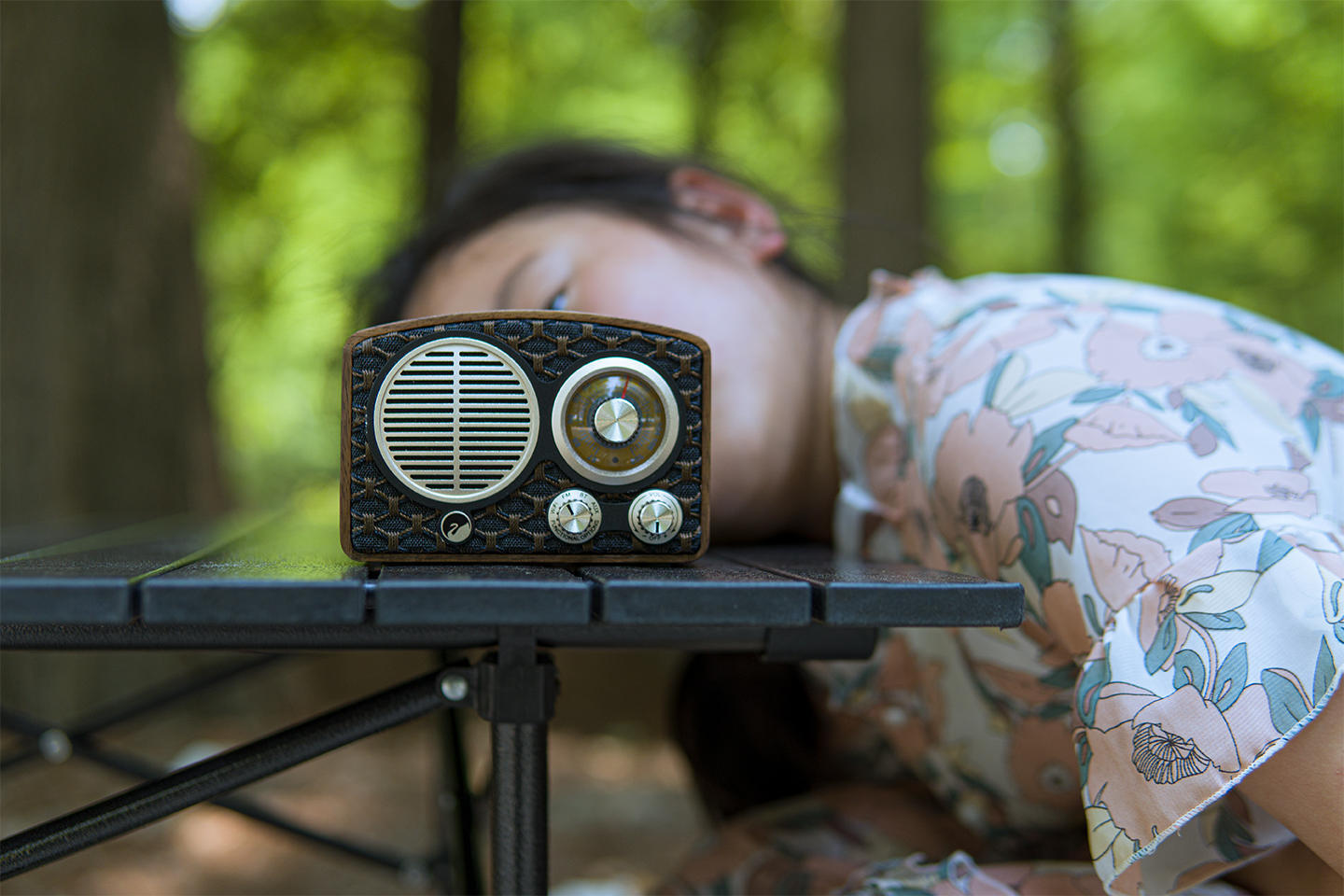 作为一款复古收音机,颜值也是我选择它的重点原因,正面3枚可视化旋钮可以控制收音波段、音量大小(拧到头为关闭)、工作模式,收音模式下,波段盘会亮起黄灯,收到台时,下方还会亮起绿色指示灯,操作比较简单,不看说明书也能搞懂。另外我比较惊喜的,收音效果非常不错,无外置天线的情况下, 室内也能搜到3个台,户外则有5个以上。