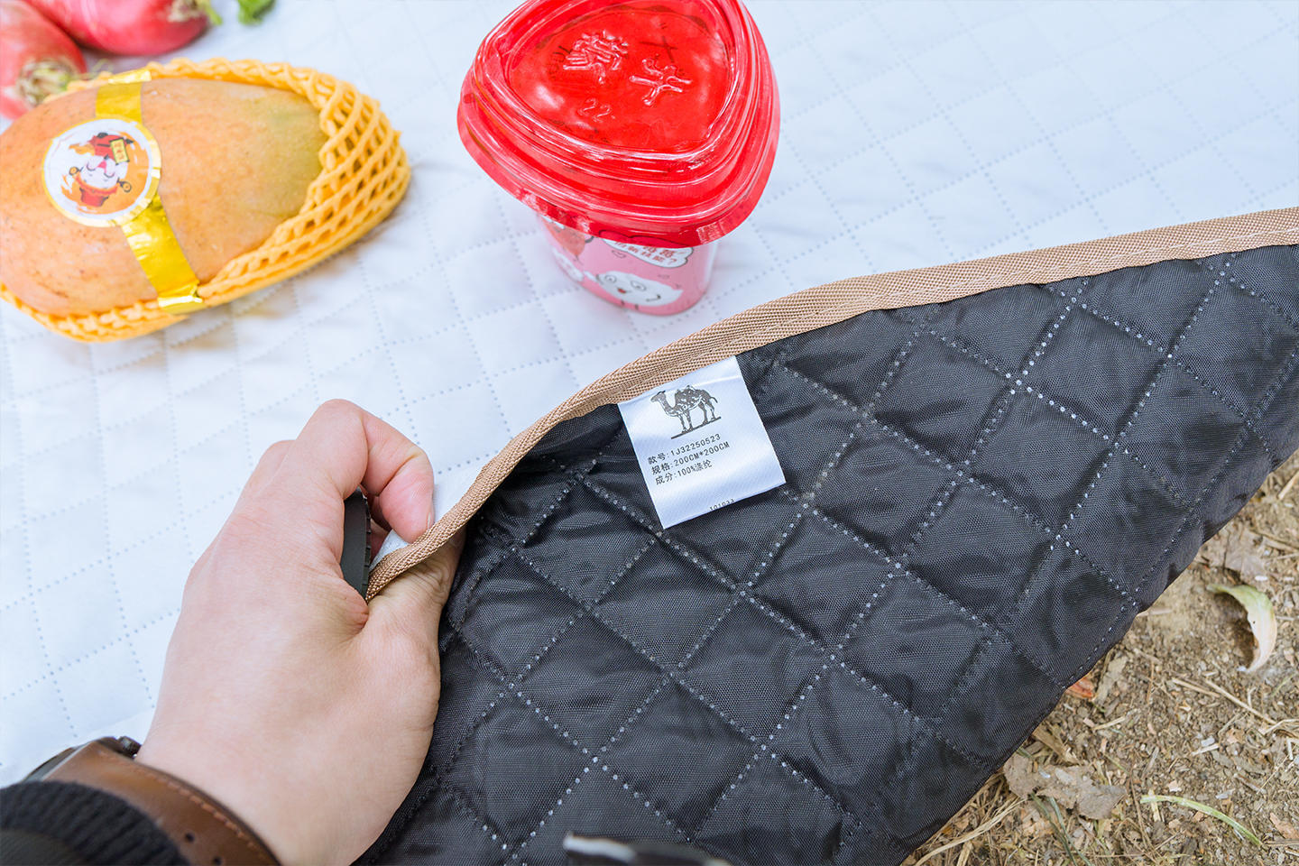不少朋友外出会带个防潮垫,坐在草地上也不错,不过偏移的防潮垫只有一层牛津布,防潮效果不好,杂草多点地方也会比较硌人。我最近入手的骆驼这款加厚防潮垫,实用的是聚酯纤维+针刺棉+牛津布底三层结构,厚实且舒适。