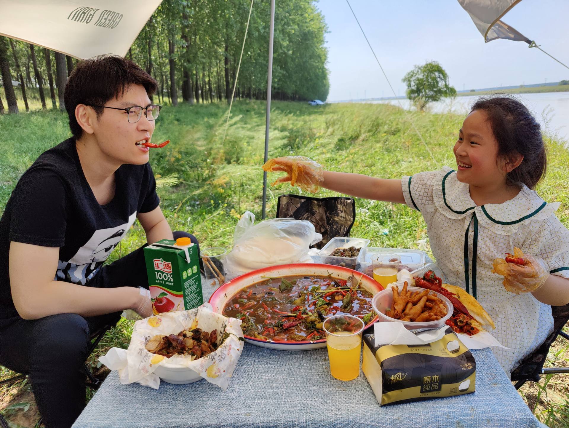 一开始我和几个朋友选定了树下的阴凉处铺防潮垫野餐,买了烤鸭、煎饼、凉菜、水果等,摆上东西开吃,不到半小时,身边就有很多蚊虫和苍蝇,树下还会飘落一些毛絮、灰尘,非常影响体验。
