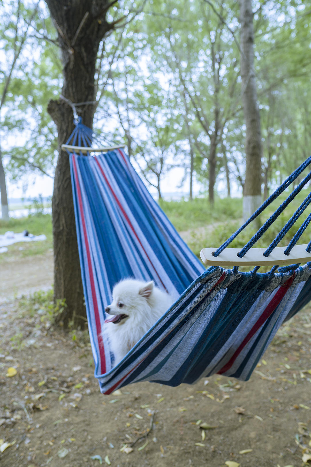 吊床肯定是小朋友的最爱了,记得小时候,父母都是用麻袋自己做吊床,现在麻袋不好找了,网上的吊床倒是很便宜,我购买的是这款双人款,官方宣传承重可达400斤,实测两个成年人挤一挤能躺下,当然我不建议这么操作,一个大人一个小孩刚刚好。
